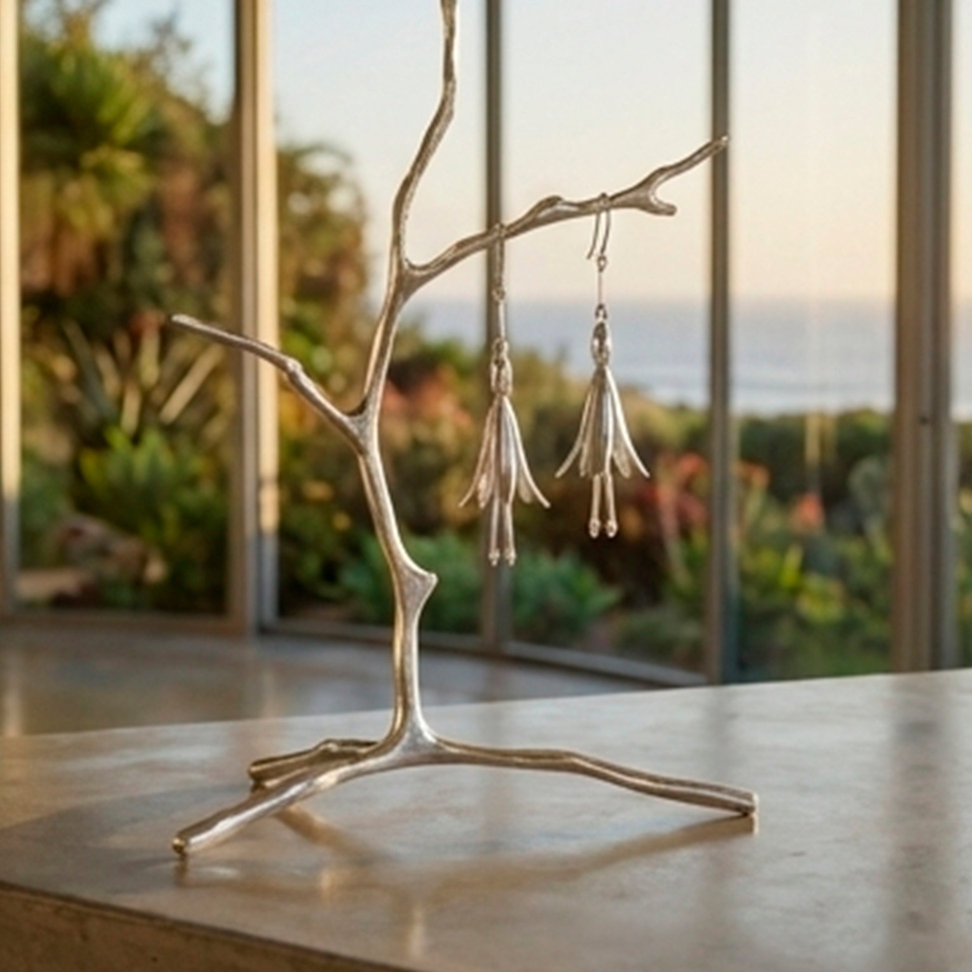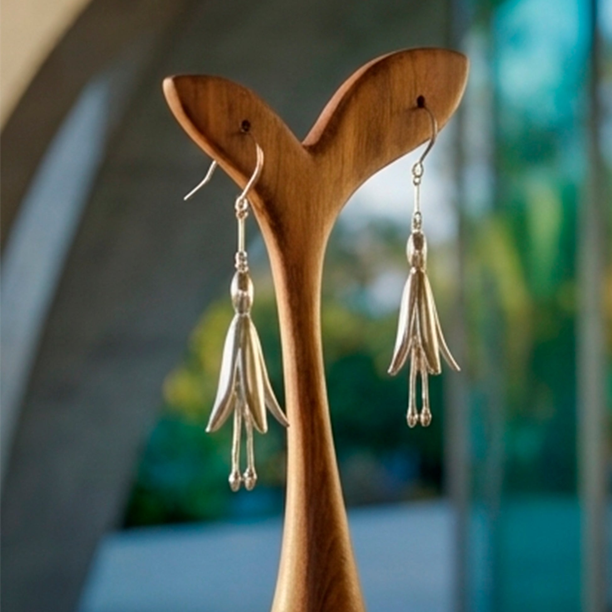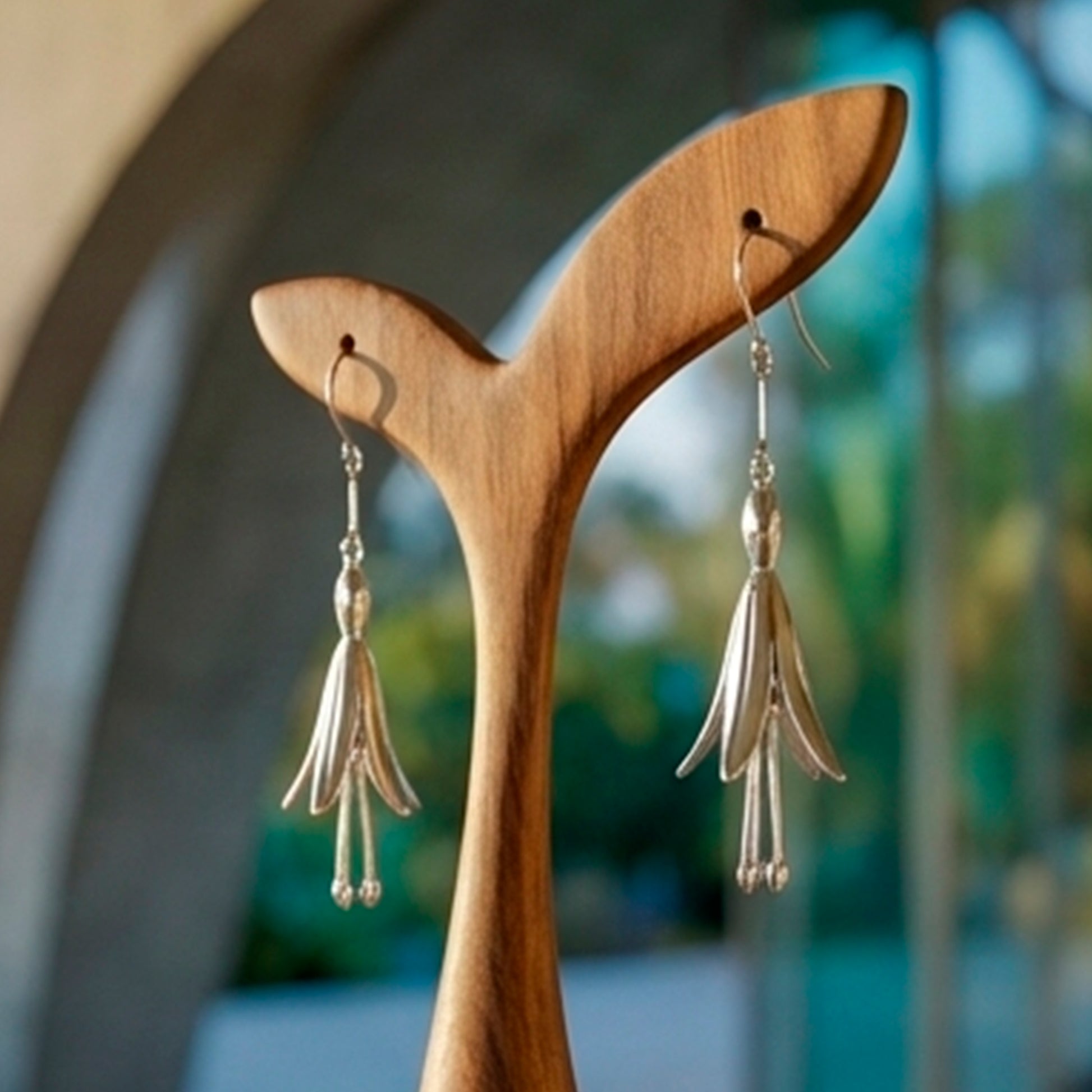 Nuestro querido chilco, también llamado Chilca, aljaba, bailarina, thilco, chilcón, fucsia, jazmín del papa, palo blanco, pendientes de la reina, o tilca, es un arbusto originario de Argentina y Chile que crece cerca de cursos de agua y se cultiva como planta ornamental debido a lo hermoso de sus flores y singular forma. Hicimos esta versión bañada en plata de 9.25 para que le des un toque único de elegancia y sofisticación a tu outfit, llevando contigo además un pedacito de Chile.