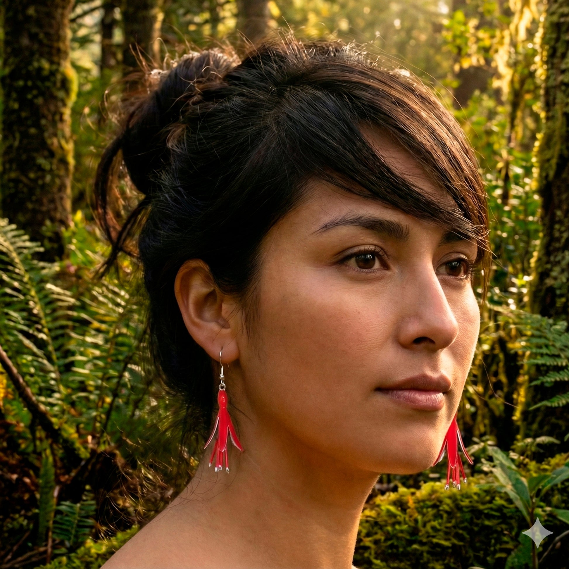 Nuestro querido chilco, también llamado Chilca, aljaba, bailarina, thilco, chilcón, fucsia, jazmín del papa, palo blanco, pendientes de la reina, o tilca, es un arbusto originario de Argentina y Chile que crece cerca de cursos de agua y se cultiva como planta ornamental debido a lo hermoso de sus flores y singular forma. Livianos y cómodos, están esmaltados al horno para asegurar su brillo, colores vivos y durabilidad. Dale un toque único de elegancia y sofisticación a tu outfit, llevando contigo además un pedacito de Chile.