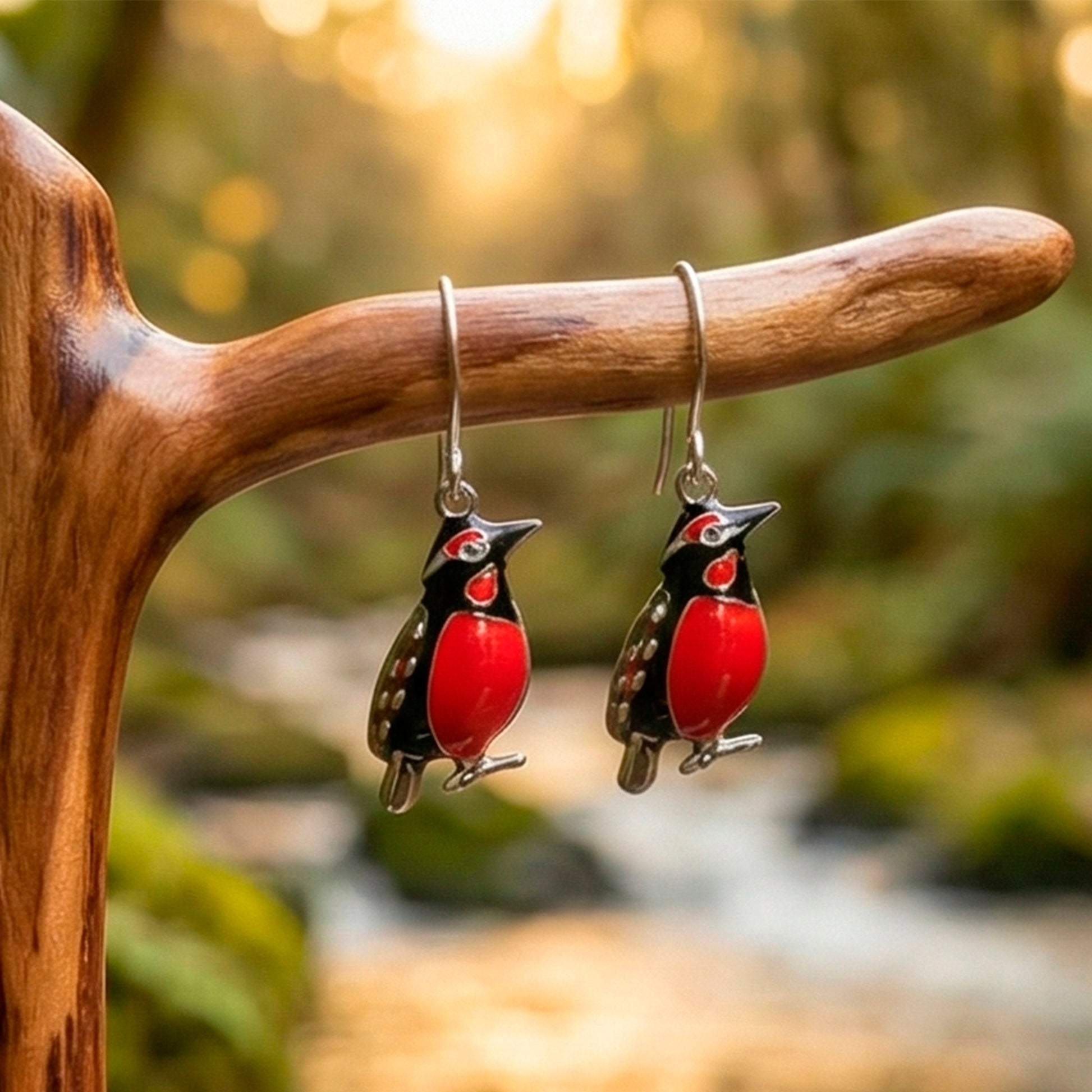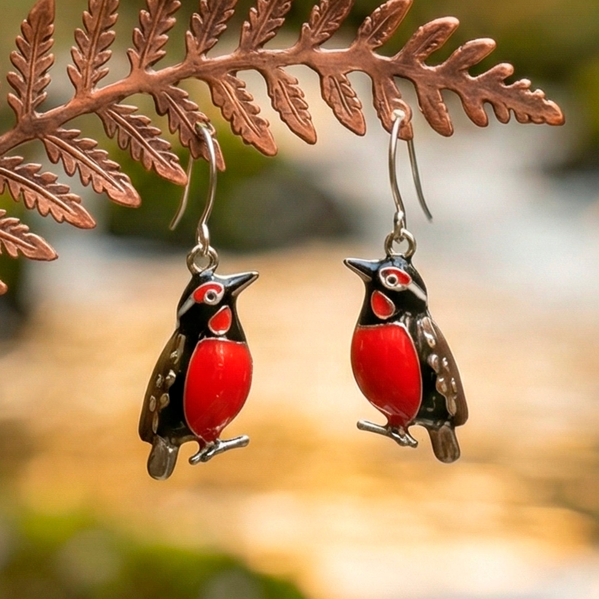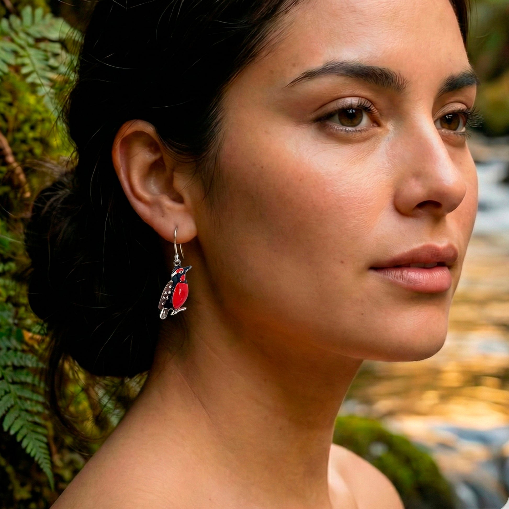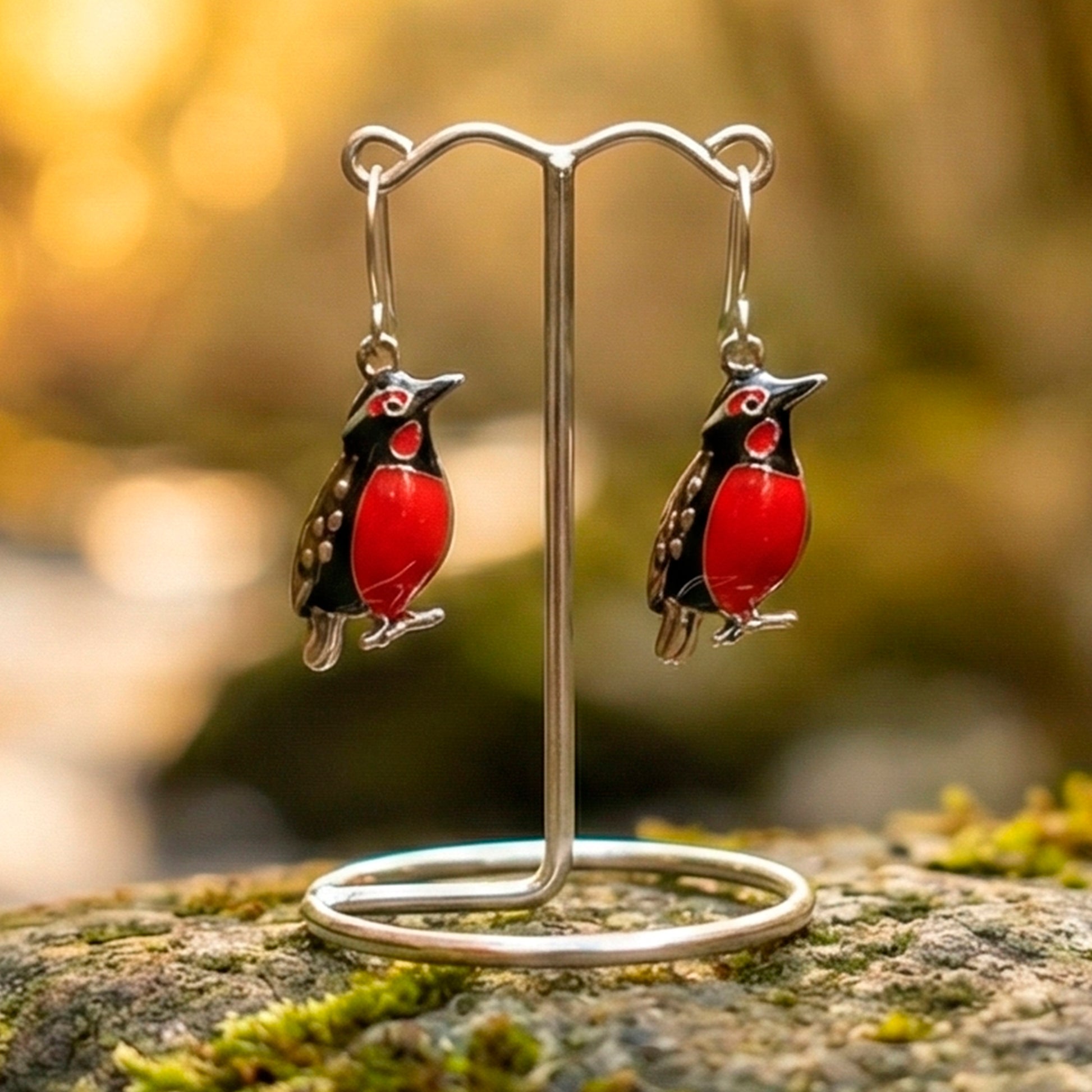 Luce la belleza única de la fauna nativa de Chile. Estos aros, inspirados en la Loica (Leistes loyca), capturan la esencia vibrante de este ave emblemática, reconocida por su inconfundible pecho rojo intenso que resalta sobre su plumaje oscuro.