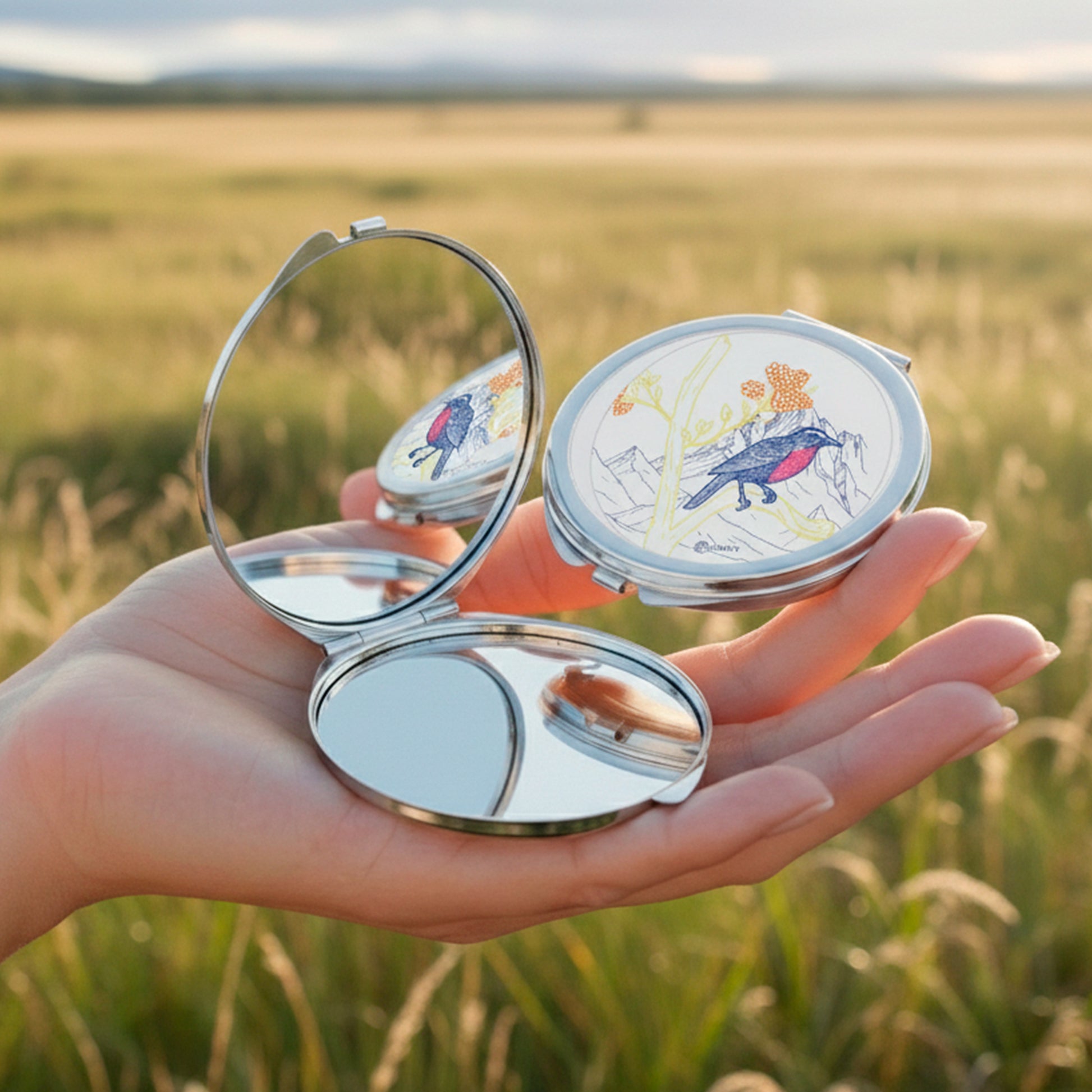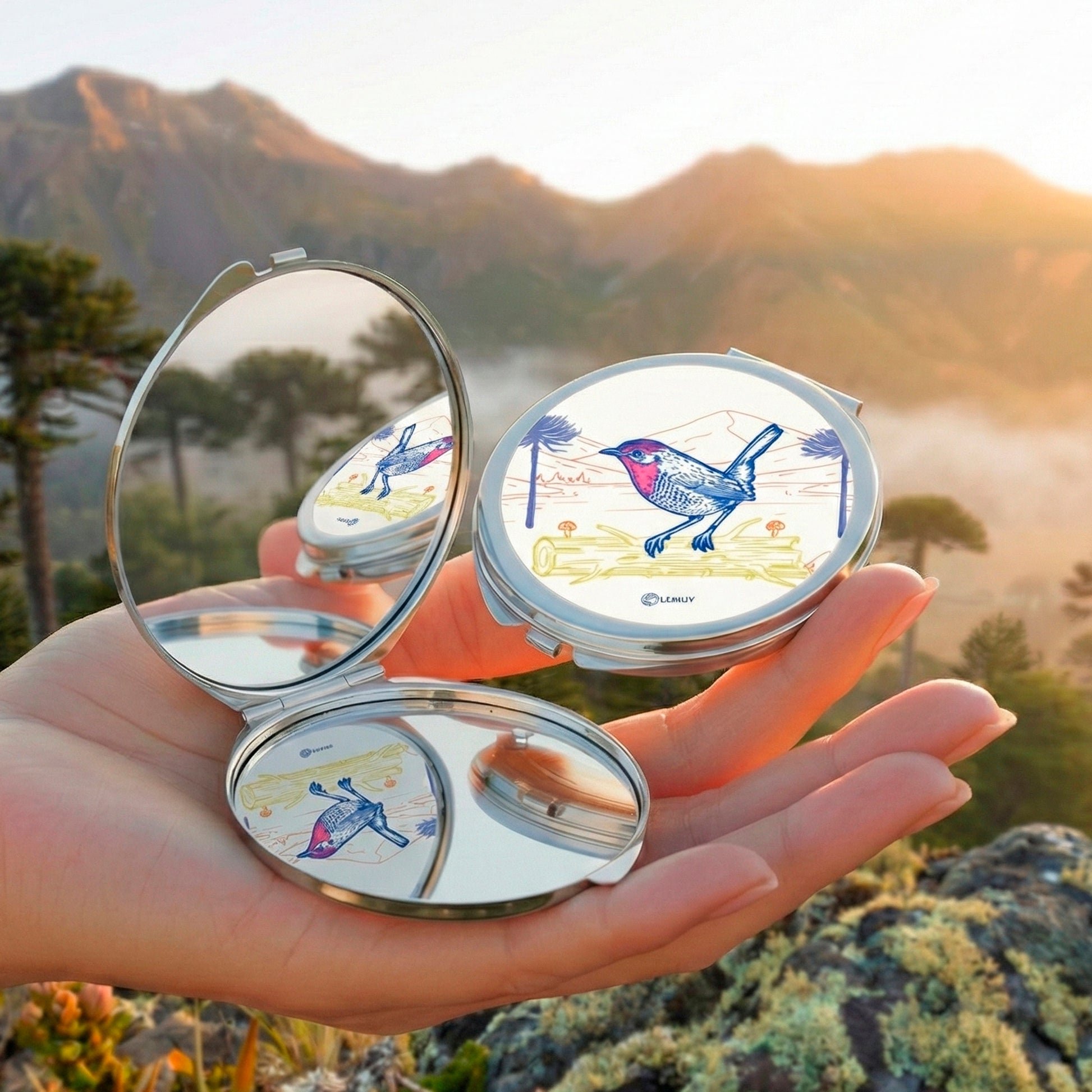 El infaltable en tu cartera, bolso o estuche: El espejito que todos necesitamos. En 4 modelos distintos de Aves de Chile para que puedas elegir.