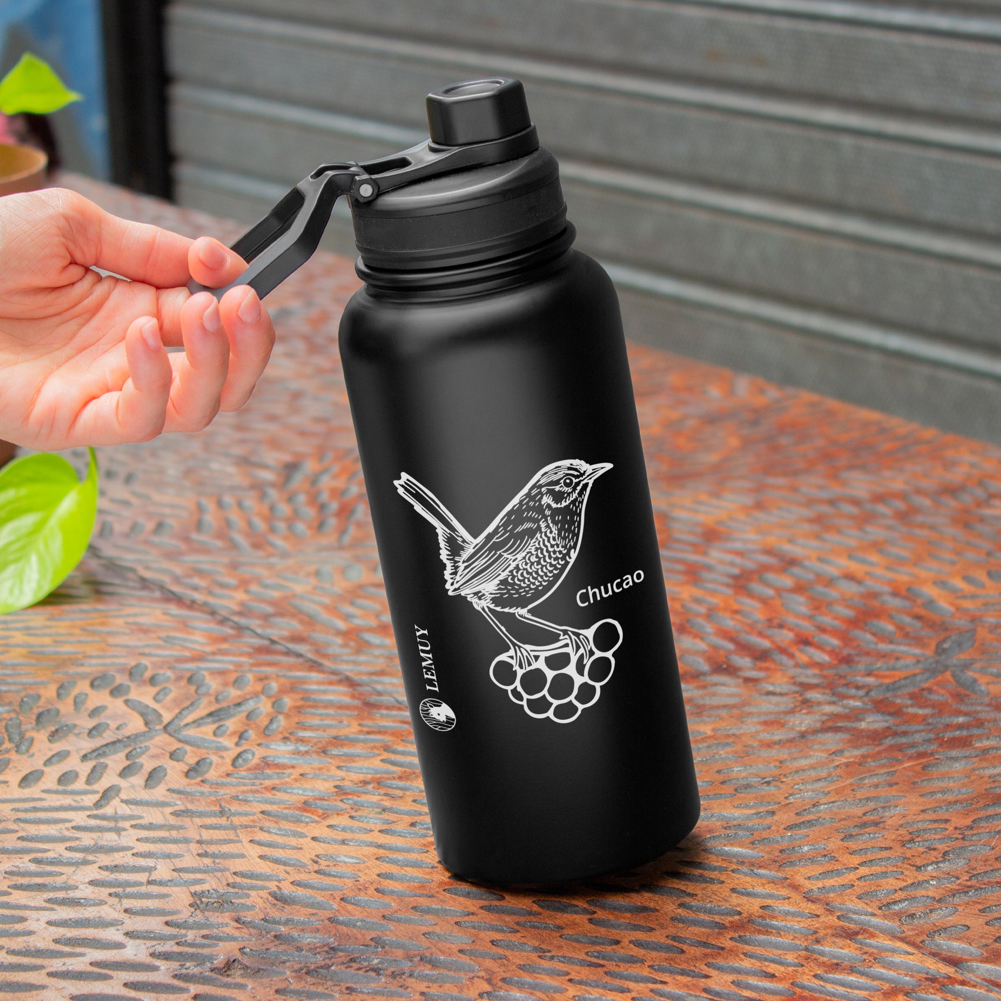 Esta hermosa y gran botella ilustrada ¡de 1 litro! será tu compañera confiable para almacenar y transportar líquidos, ya que mantiene hasta 12 hs la temperatura de las bebidas calientes y 24 hs de las bebidas frías.Viene con una tapa con anillo de silicona, boquilla con cierre rosca antiderrame y una manilla plástica para su agarre y transporte.