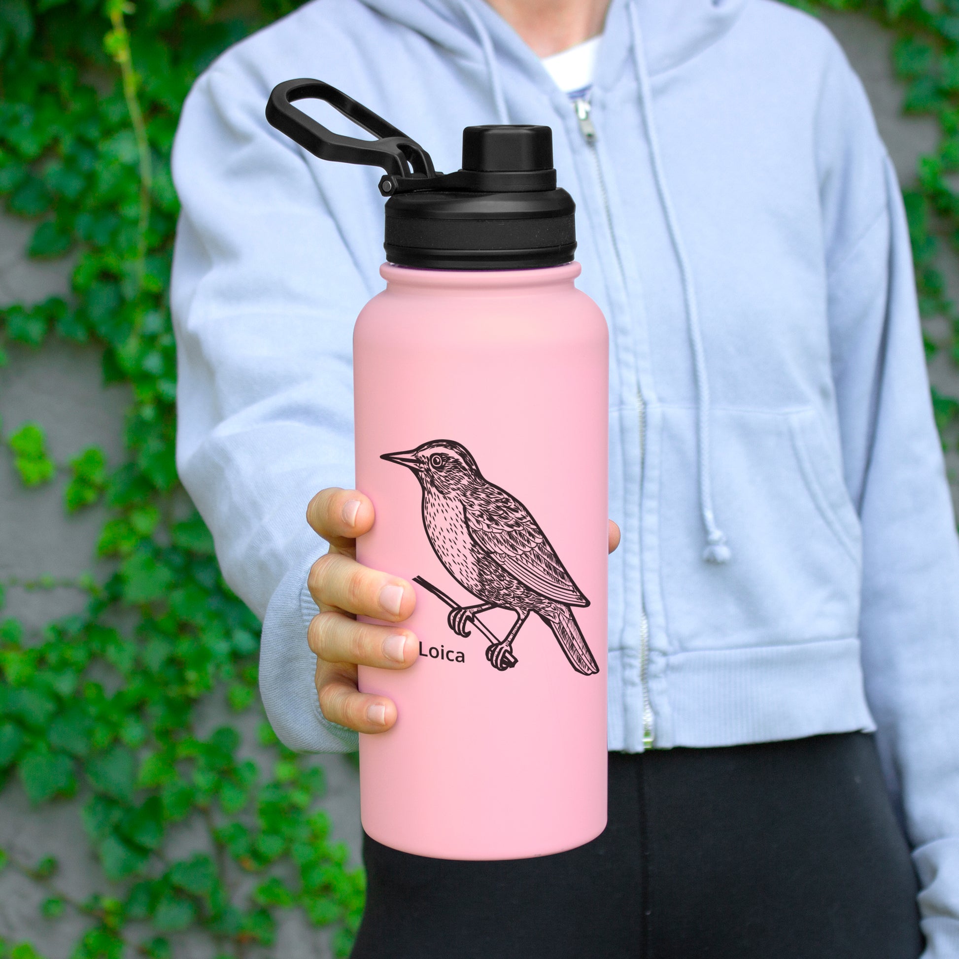Esta hermosa y gran botella ilustrada ¡de 1 litro! será tu compañera confiable para almacenar y transportar líquidos, ya que mantiene hasta 12 hs la temperatura de las bebidas calientes y 24 hs de las bebidas frías.Viene con una tapa con anillo de silicona, boquilla con cierre rosca antiderrame y una manilla plástica para su agarre y transporte.