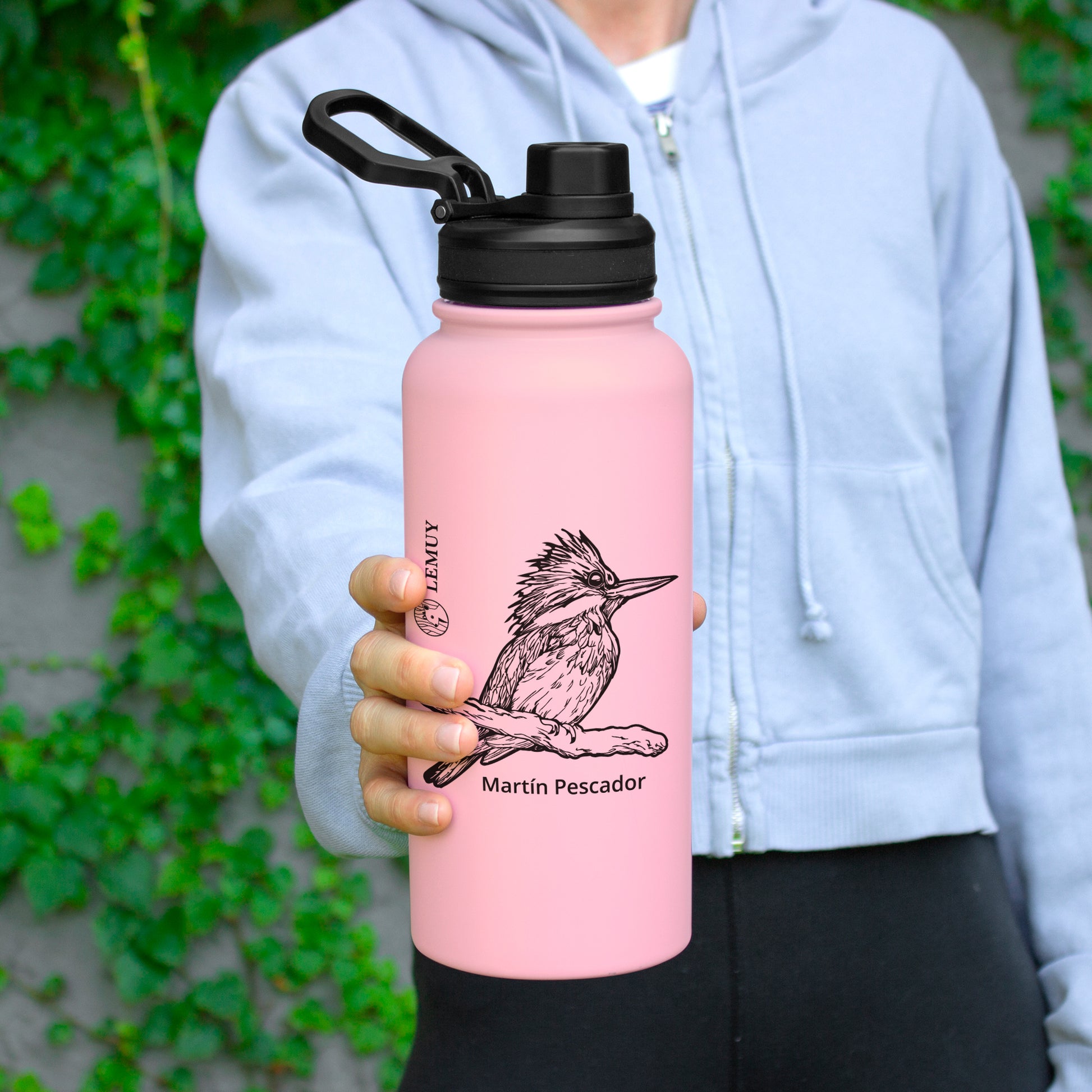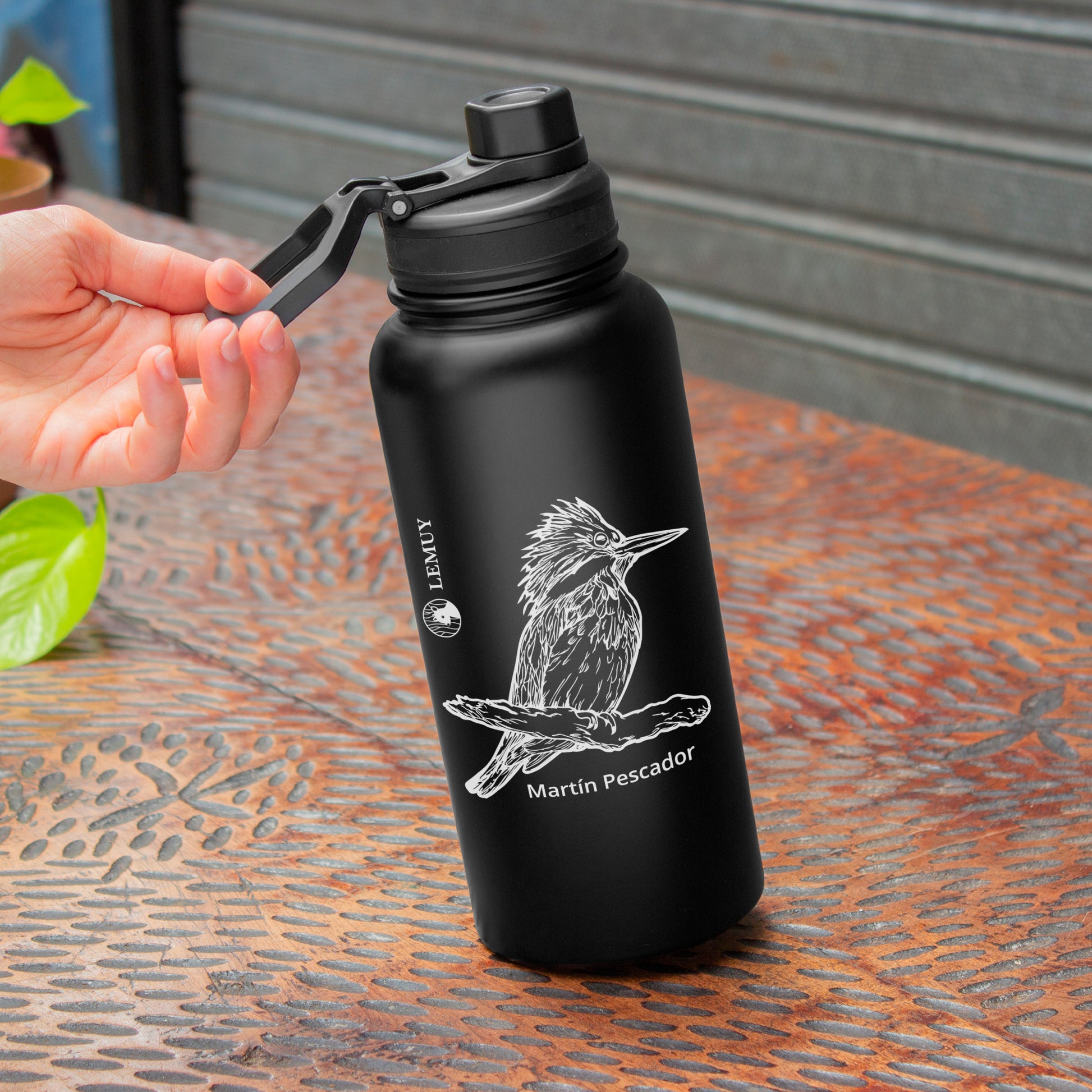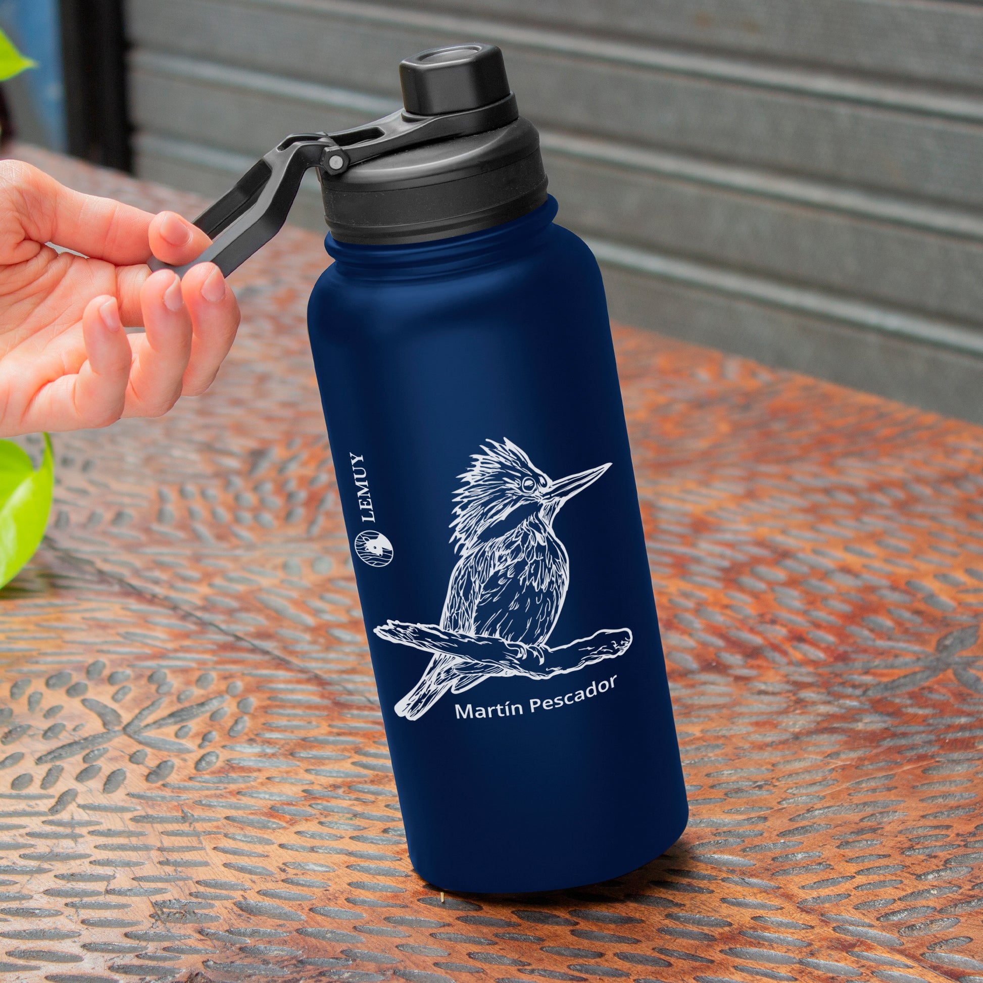 Esta hermosa y gran botella ilustrada ¡de 1 litro! será tu compañera confiable para almacenar y transportar líquidos, ya que mantiene hasta 12 hs la temperatura de las bebidas calientes y 24 hs de las bebidas frías.Viene con una tapa con anillo de silicona, boquilla con cierre rosca antiderrame y una manilla plástica para su agarre y transporte.